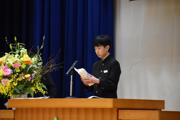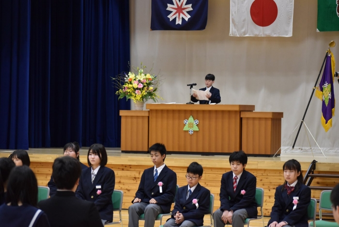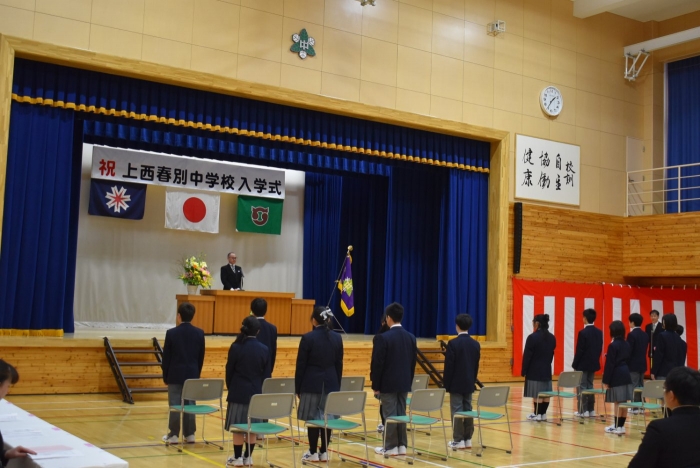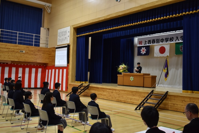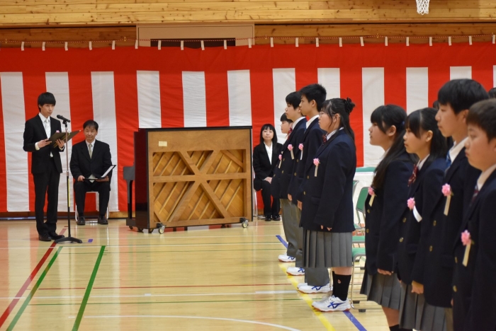令和7年度 入学式 2025年04月07日(月) 行事 7日(月)は、午後から入学式も行われました。保護者の皆様、お子様のご入学おめでとうございます。 16名の新入生が拍手の中、迎えられ、校長先生や来賓の方々、在校生から祝辞を頂きました。誓いの言葉では新入生代表が挨拶し、全校生徒が立派な姿で一生に一度の時間を過ごしました。全校生徒62名で今年度が始まります。よろしくお願いいたします。