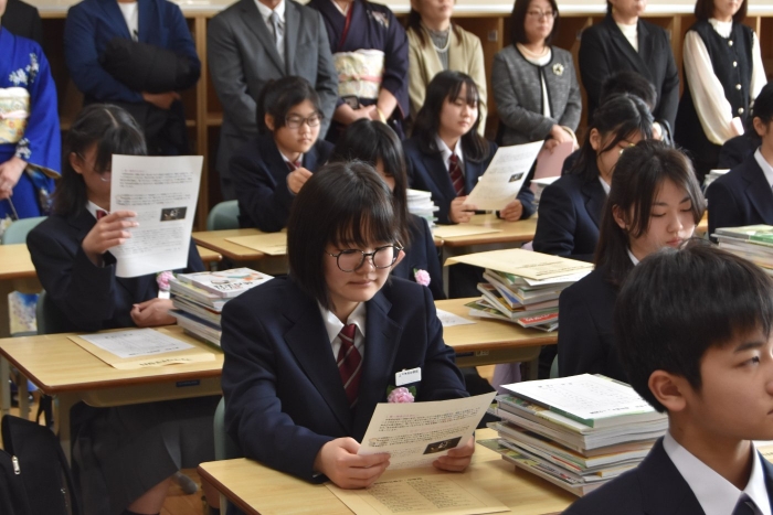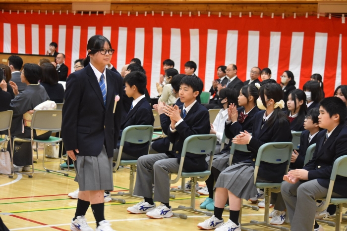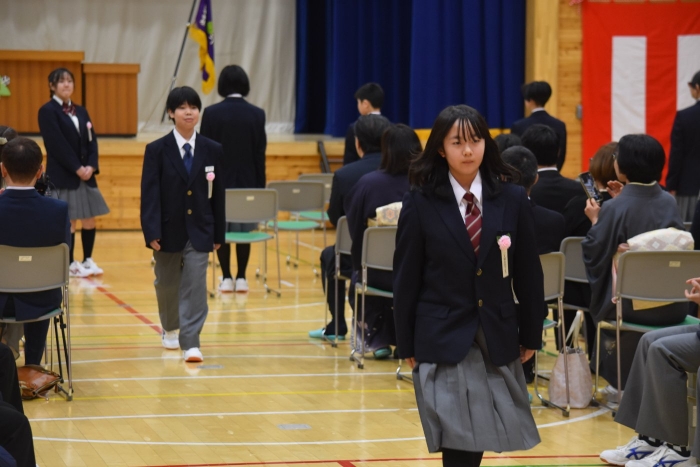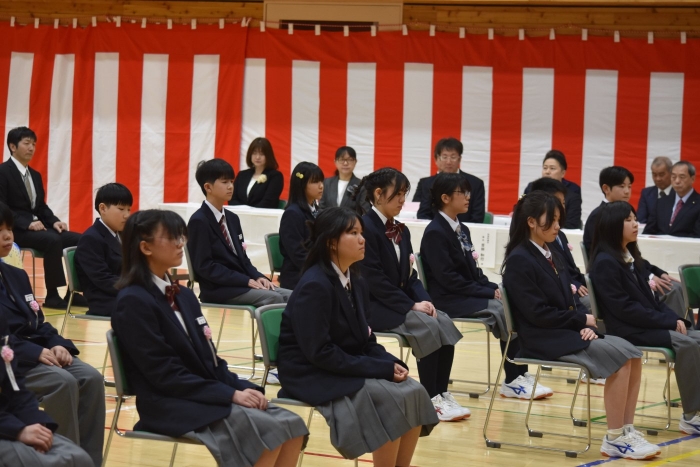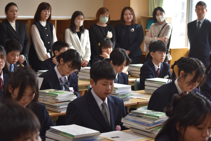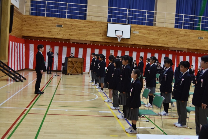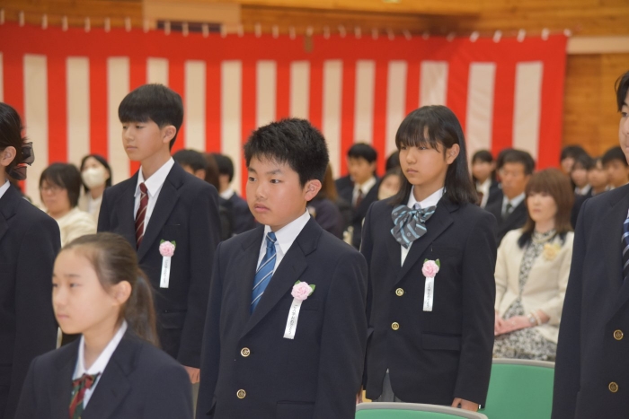 真新しい制服に身を包んで式に臨む姿や、教室で担任の先生の話に耳を傾ける様子には、まだ小学生らしさが残る一方で、一人ひとりの表情からは中学生としての新たな一歩への意欲が伝わってきました。