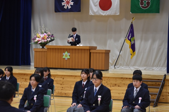 これからは上西春別中学校の一員として、2・3年生とともに学び合い、支え合いながら、それぞれの学びの山を登り切ってほしいと思います。