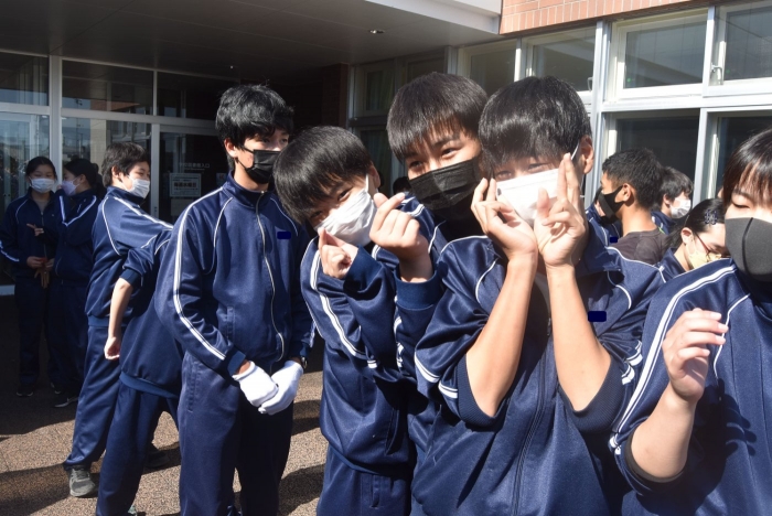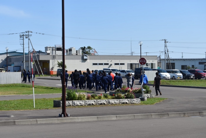 開会式で気持ちを一つにした後は、楽しそうに広い上西春別の街へ歩きだす生徒の皆さん。
