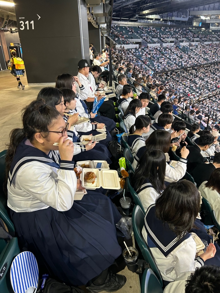修学旅行、最終日の朝です。昨日は新しい球場で野球観戦を楽しみました。今日は千歳空港で別海町をPRする活動を行い、その後別海に帰ります。