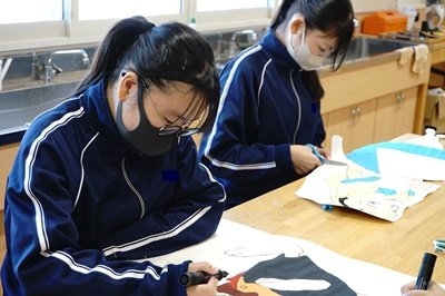 装飾・展示部門は、今まで作ってきたものを校内の壁に貼る作業を行い、主に講堂につながる廊下に飾り付けをしていました。