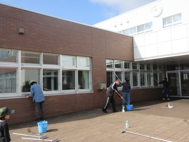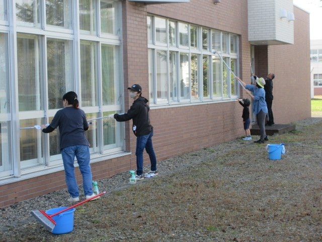 先週4日(土)、午前中にPTA環境整備作業がありました。PTAの環境厚生部の保護者と先生方が集まり、校舎の窓の清掃を行いました。今年は蜘蛛の巣や卵も多く、ホウキで取り除きながらワイパー等で掃除を行いました。お忙しいところお集まりいただき、ありがとうございました。