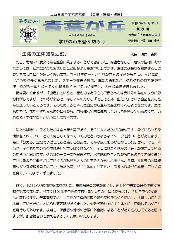 学校だより8号を掲載します。ご高覧頂けますと幸いです。