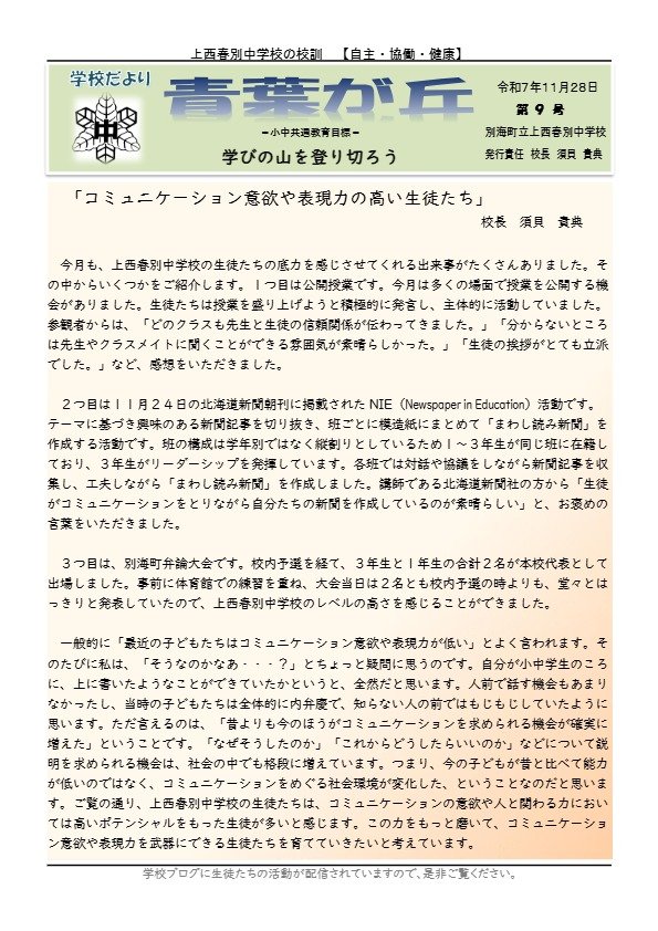 学校だより11月号(第9号)