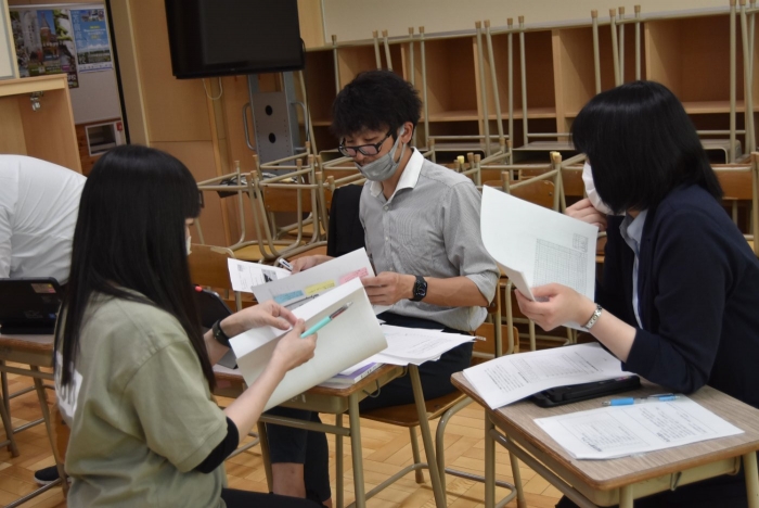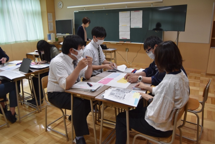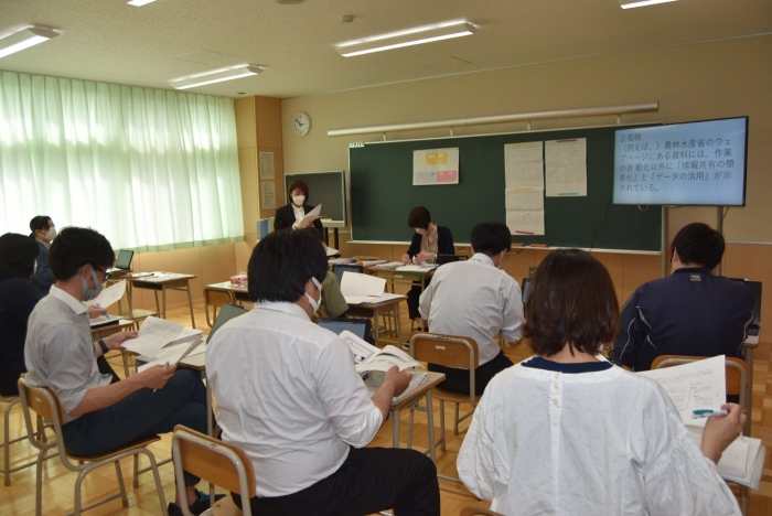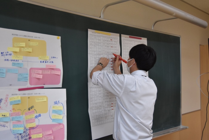 全国学力・学習状況調査の結果を受けて 2022年05月13日(金) 職員研修 昨日の研修では、4月に実施された「全国学力・学習状況調査」の自校採点の結果を分析し、課題の要因を挙げて改善方策を考えました。 事前に調査問題を解いていてもらい、どんな解答になったかを交流することから始めました。 各教科担任からの解説。解答や調査問題への質問も出ました。 課題の要因を出し合い、改善方策をまとめ・・・ アイディアを出し合いました。 各教科における課題改善へ向けた指導の工夫と、重点とする単元(題材)を設定し、 資質・能力の育成を目指して全職員で取り組みます。 重点単元(題材)を一覧にまとめます。 調査問題の分析の後は、生徒質問紙の結果の分析に基づく改善方策も出し合いました。