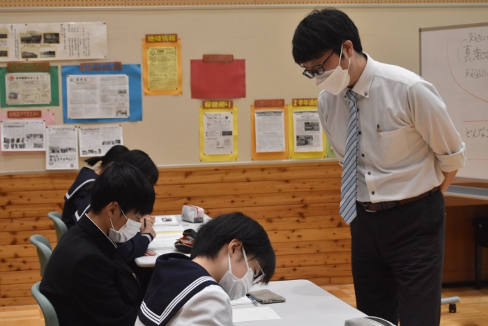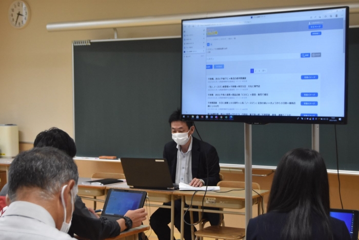 北海道新聞の方にご来校いただき、様々な機能についてご説明をいただきました。