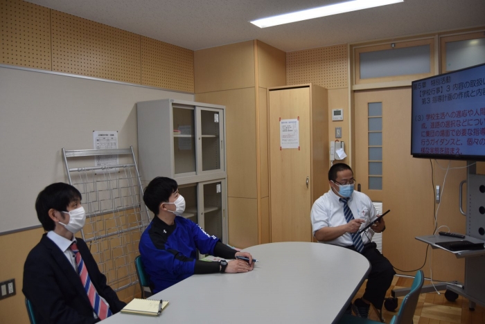 先月小学校の初任段階の先生方と一緒に授業づくりをした、1年生の国語の研究授業を行い、小学校の主幹教諭にご来校いただいて指導・助言をいただきました。