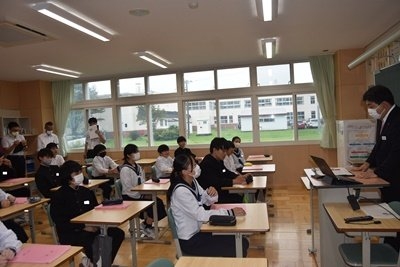 河津教諭には午前中に本校の道徳科の授業を参観していただき、午後には2年生の学級で師範授業をしていただきました。