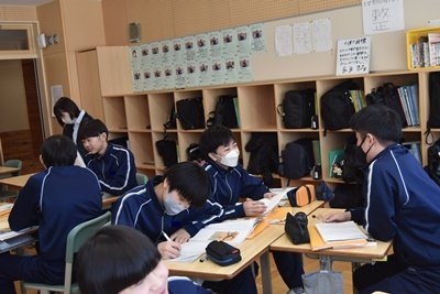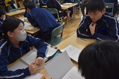 3つのグループに分かれて授業づくりを進めたブロック研修は、1年生英語と2年生社会の授業で締めくくり。