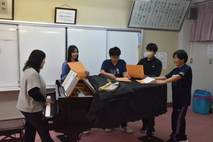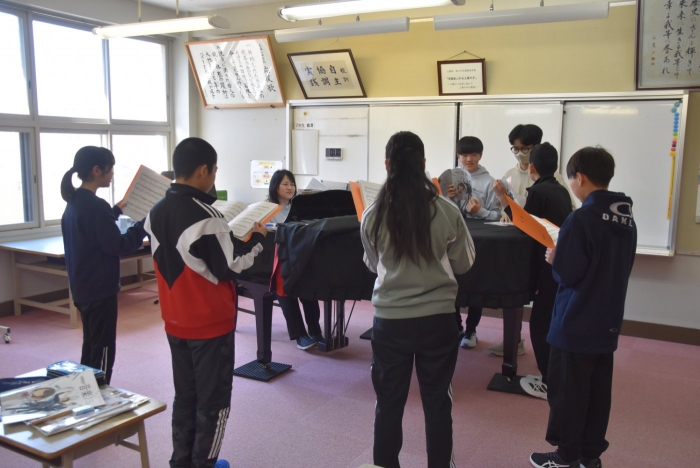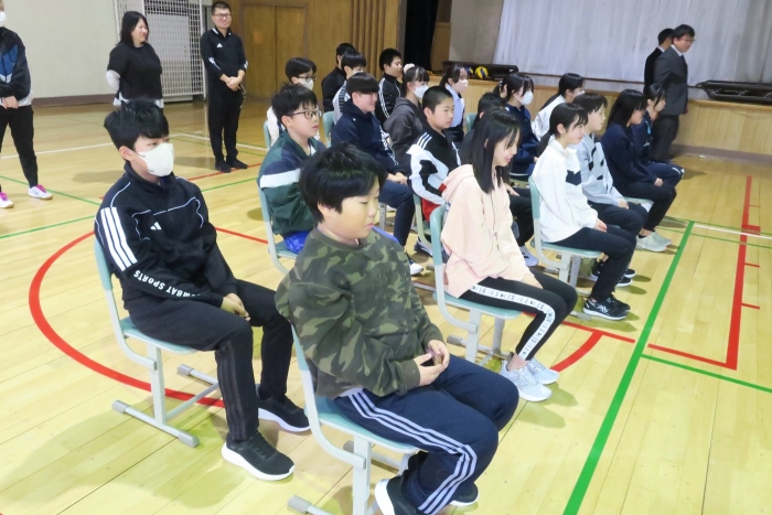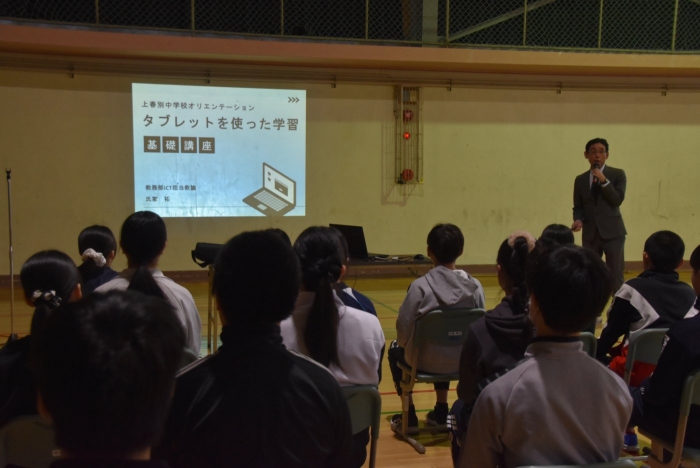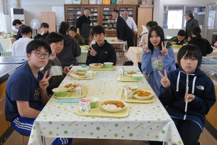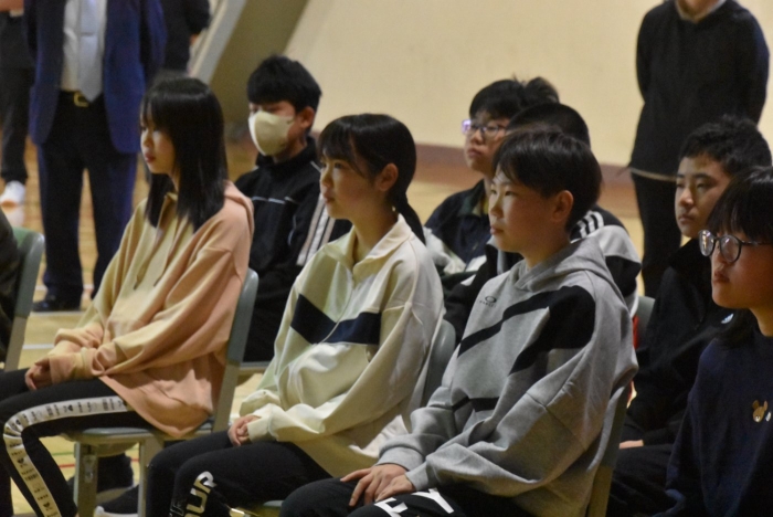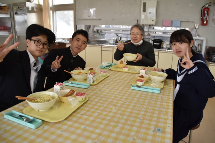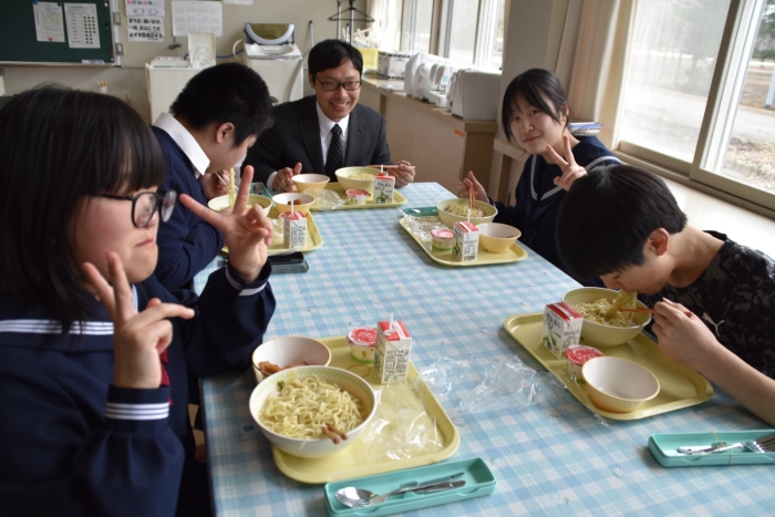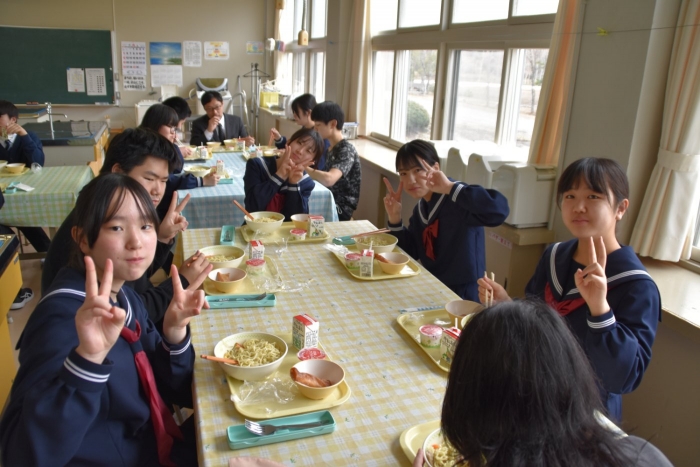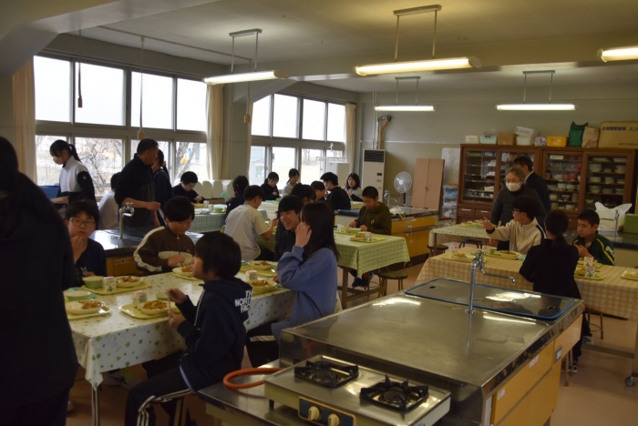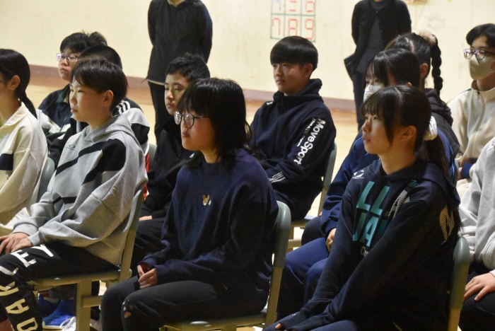 授業風景 2026年04月14日(火) NEW 授業の様子 式の後から学活や授業(おもにオリエンテーション)も始まりました。今年度から給食も家庭科室での全校給食になり、皆さん楽しそうに食べています。先週金曜日にはスケート選手の野々村太陽さんが来校し、オリンピックの話を聞いたり、全校写真を撮りました。昼休みも学年分け隔てなく、交流しています。