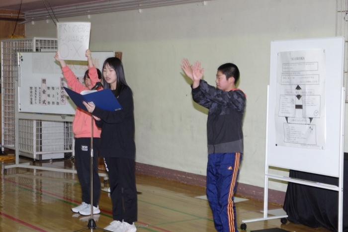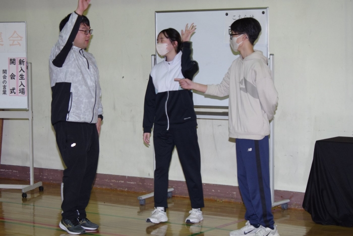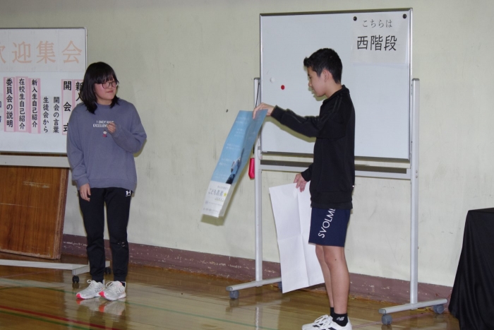新入生歓迎集会 2026年04月18日(土) NEW 日々のできごと 今週は1年生に向けた「新入生歓迎集会」が生徒会主催のもと行われました。1年生の自己紹介から始まり、生徒会長のあいさつ、部活紹介や寸劇による委員会の紹介、部活動紹介では一緒に体験もしました。生徒会からも本校の「上春中スタンダード(NOの取組)」や「FIVE LIFE]の説明が行われ、発表者は皆、1年生にわかりやすく楽しんでもらおうと一生懸命な姿が素敵でした。