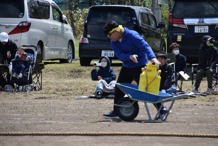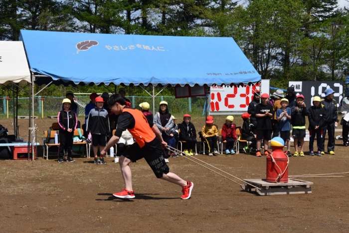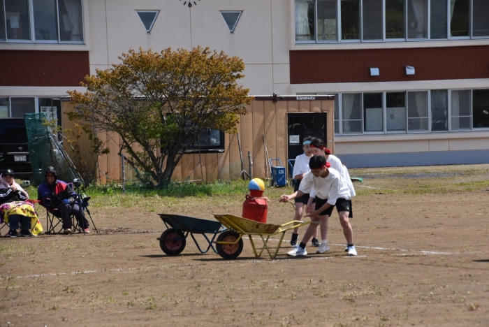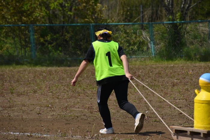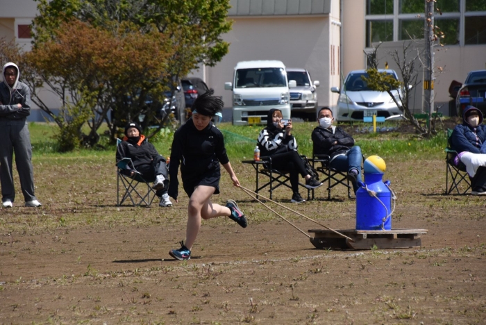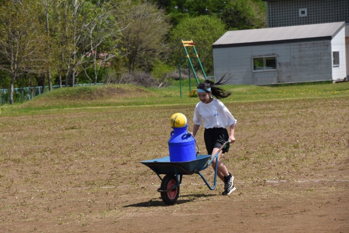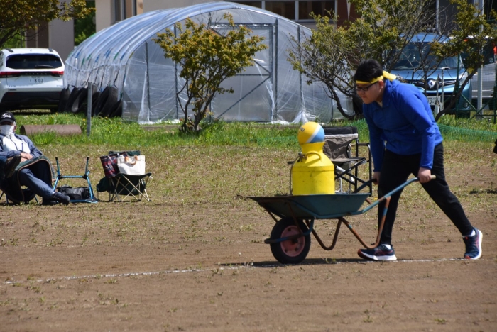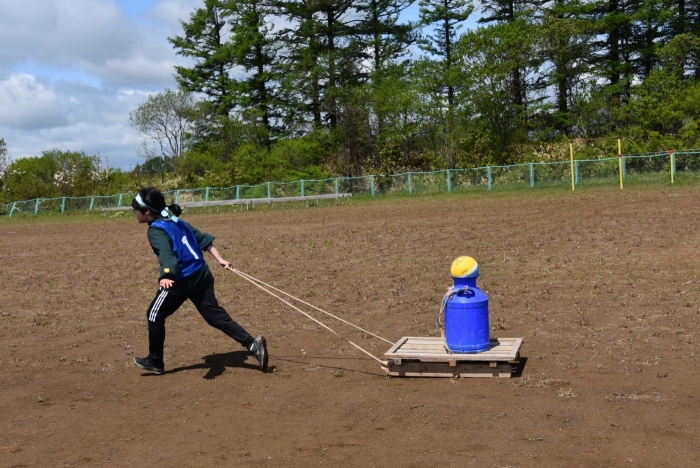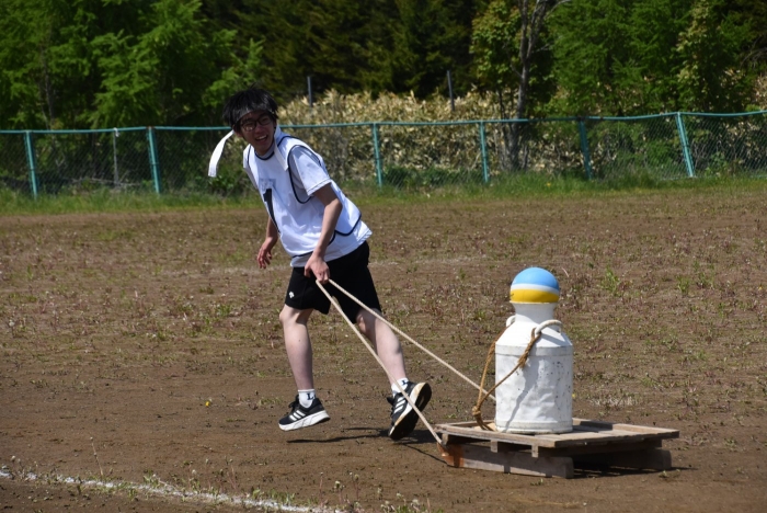 今日のために、中学生はボールを乗せた集乳缶を背負って、たくさん練習をしてきました。