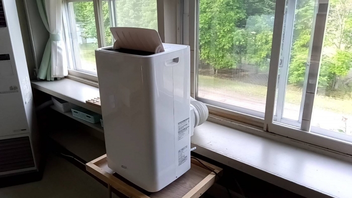 教室にスポットクーラーを設置し、動かせるようにしました。