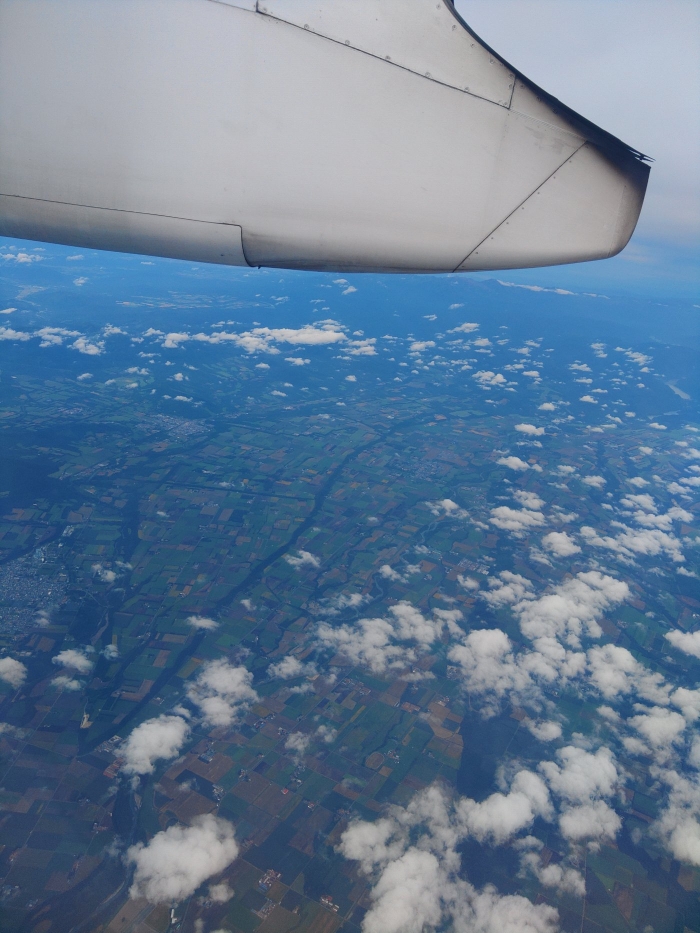 間もなく千歳空港。ふるさとPR活動が待っています。