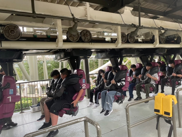 旅行前は絶叫マシンへの不安の声も聞かれましたが、いざとなれば覚悟も決まります。次々とマシンに搭乗しました。