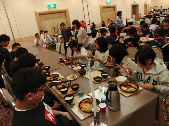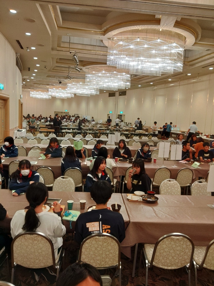 【上春中修学旅行6】夕飯タイム 2024年09月05日(木) さあ夕飯です。会場は他校の旅行生で溢れんばかり。明日に備えてしっかり食べましょう。 リラックスした食事が出来ました。初日が終わります。明日も頑張って行きましょう!