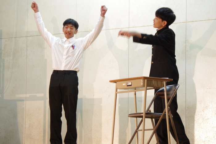 2年生の発表です。コントをやり、ダンスでは「カッコよさ」をテーマに踊りました。