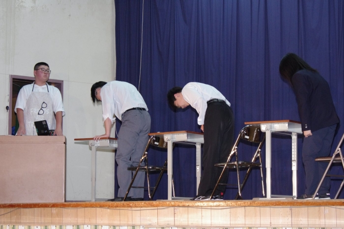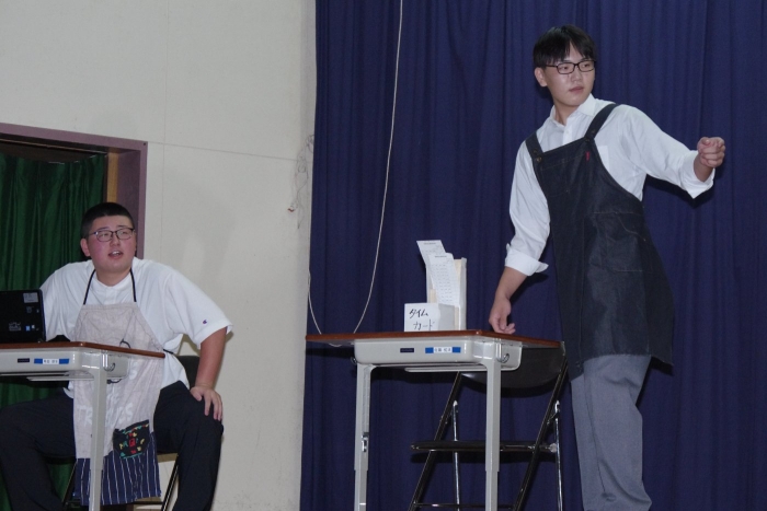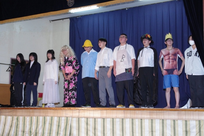 3年生の発表です。コントは昨年に引き続き2年連続の挑戦となります。劇は、1年生からの3年連続の挑戦となります。3年間の集大成として取り組みました。
