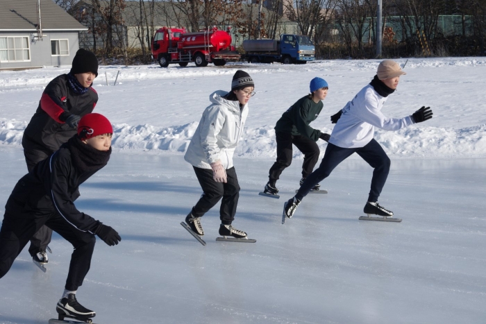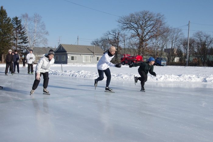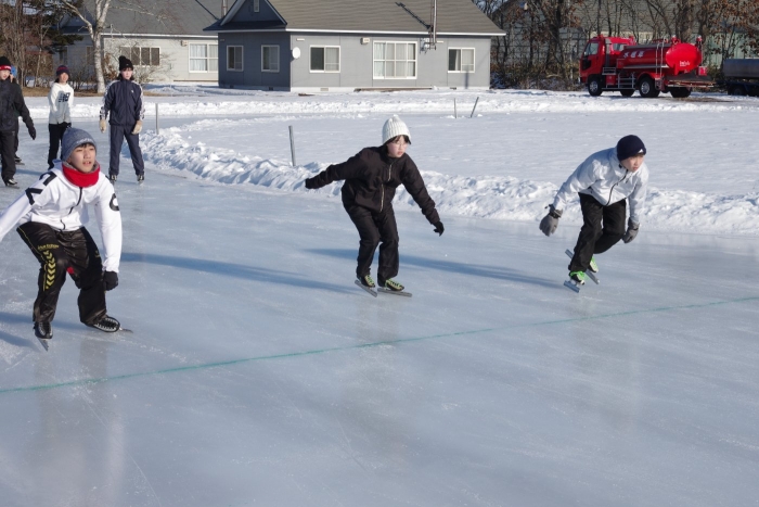 なおスケートリンクの造成につきましては、スケートリンク運営委員会の皆様、そして小中学校の保護者の皆様による散水作業のおかげです。ありがとうございます。中学校のスケート学習は来週あと2回計画しています。