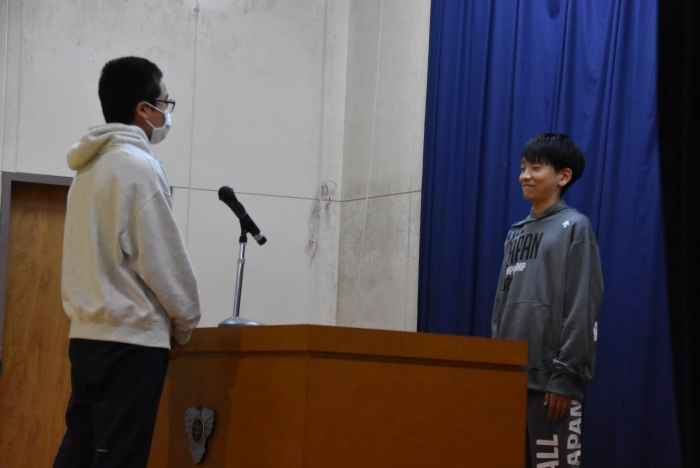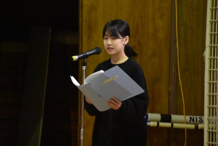 ISさんによる決意表明と、執行部を代表してOSさんの応援メッセージ、そして校長先生からの言葉です。