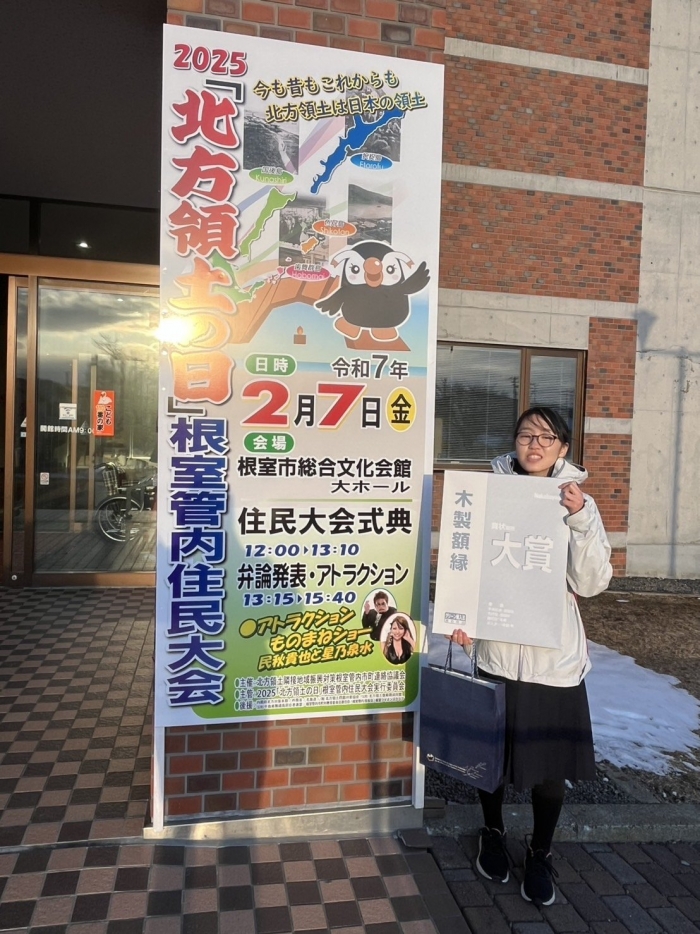 北方領土弁論大会 2025年02月07日(金) 2月7日(金)根室市文化会館で北方領土弁論大会が行われました。 上春別中学校からはURさんが出場しました。 弁論大会に向けて原稿を覚えて、しっかりと発表することができました。 お疲れさまでした。