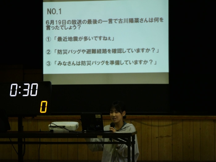 報道委員会主催で、お昼の放送の内容を質問するというものでした。