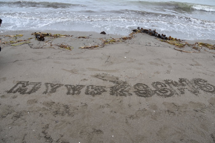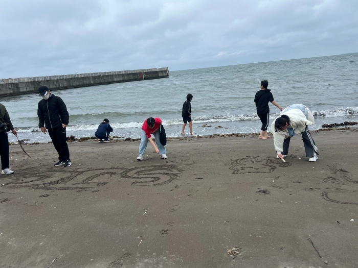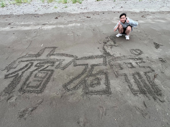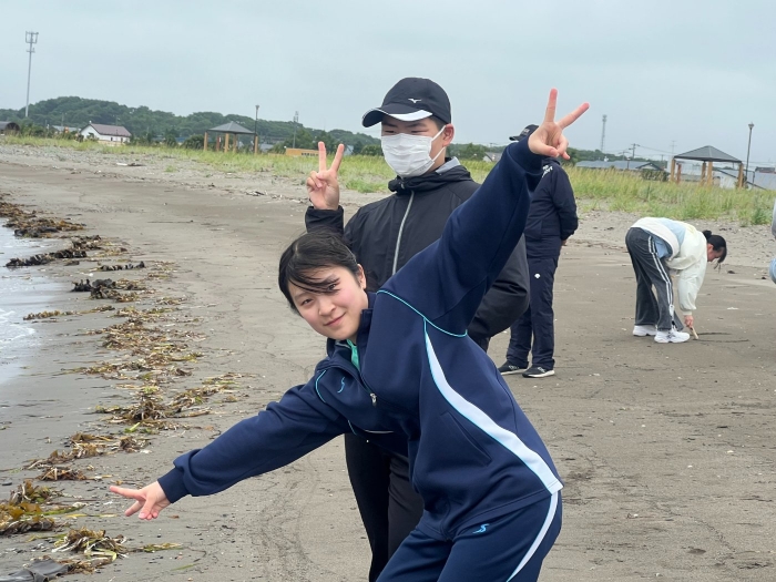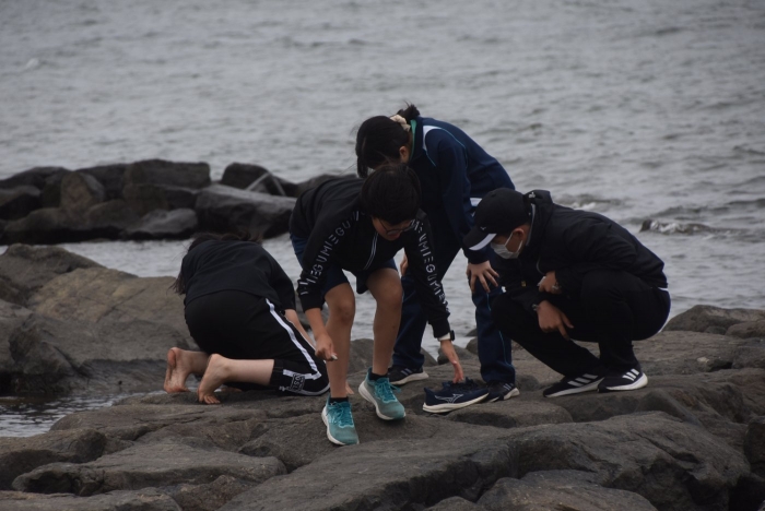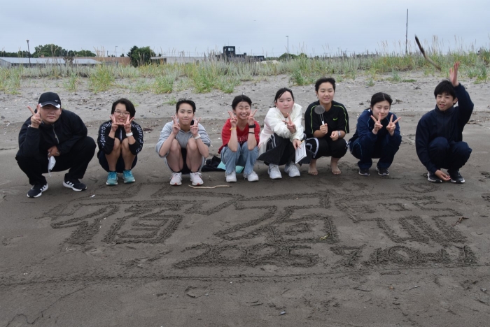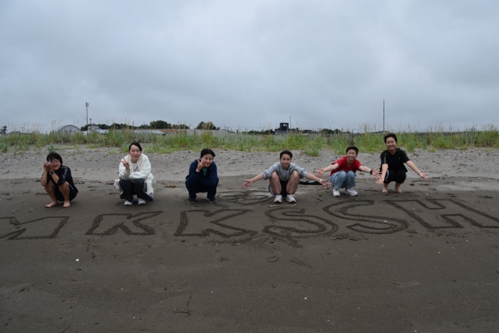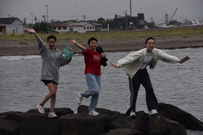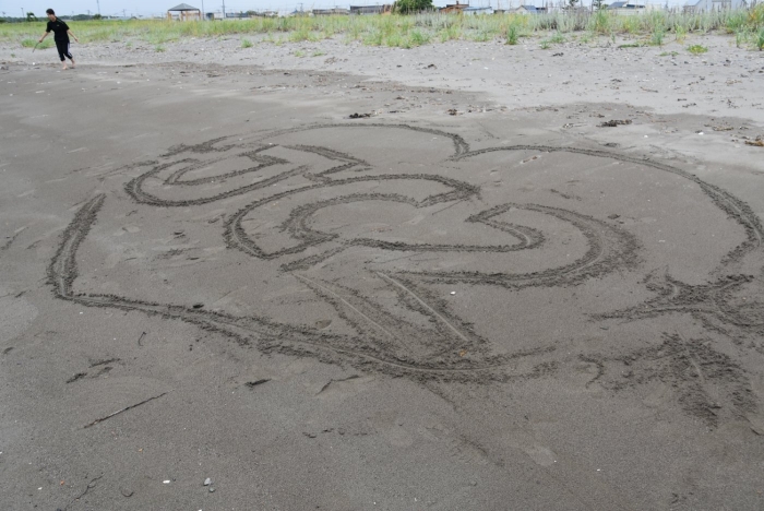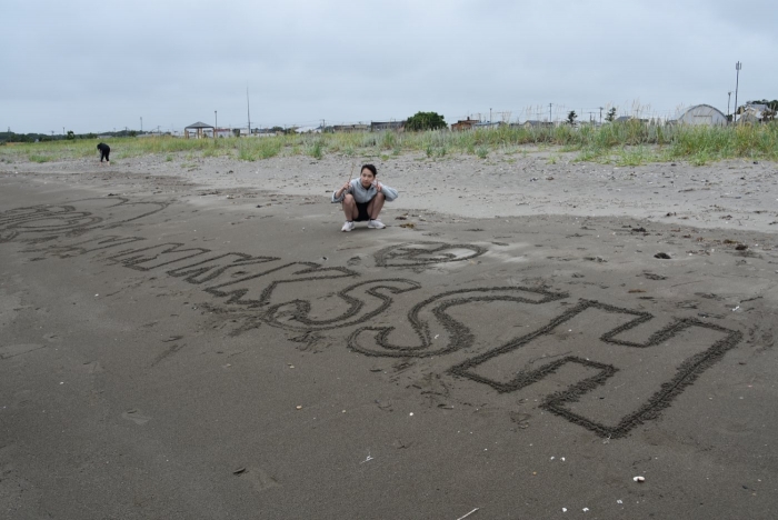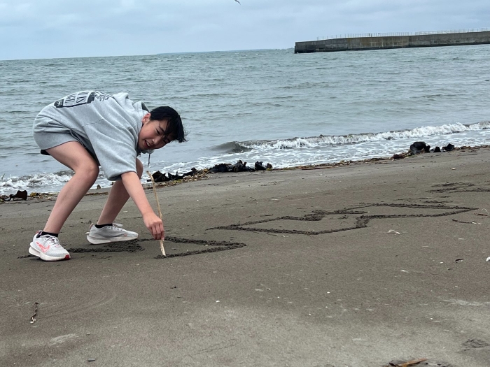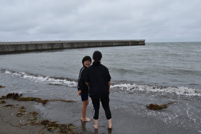 キャンプ場の海岸で遊びました。海は楽しいようです。肌寒い中元気に遊んで、海岸を楽しんでいました。