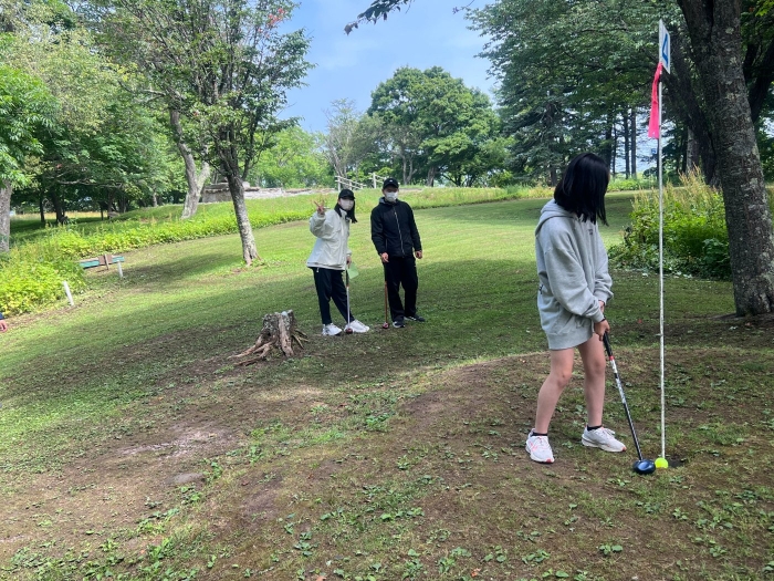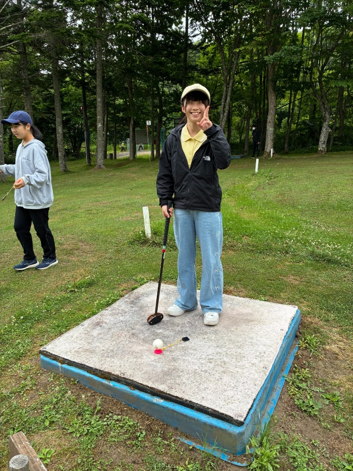 パークゴルフ場で、楽しんだ後、学校に戻りました。