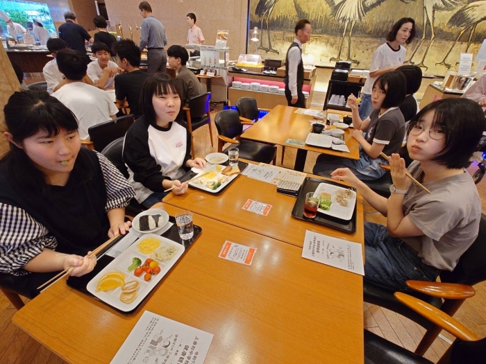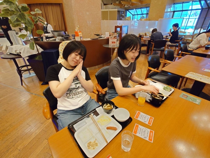 今日は昨日に比べて宿泊者が少ないのと、岡山の高校の修学旅行生が宿泊していましたが、別な会場で朝食でしたのでゆったりと食べることができました。