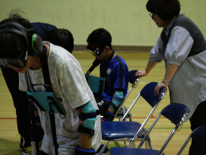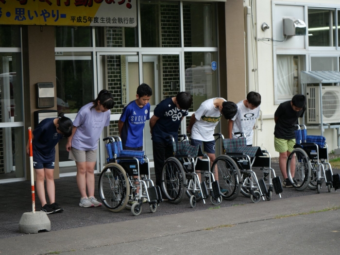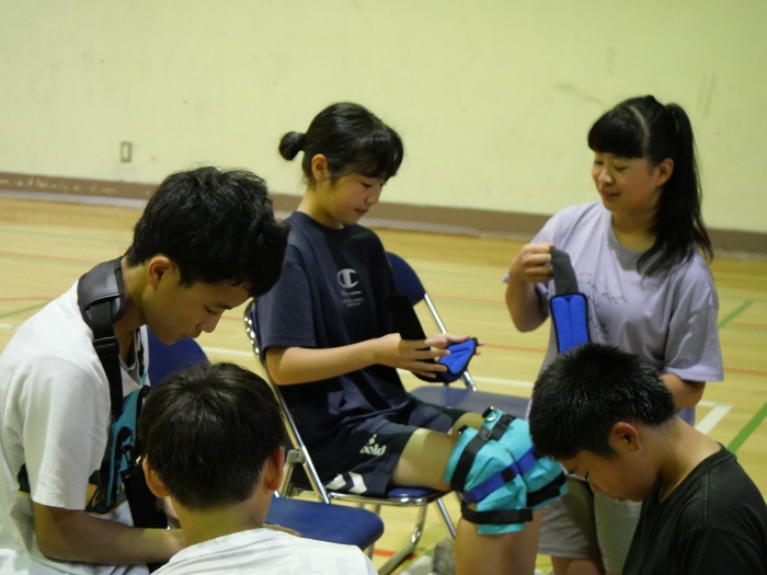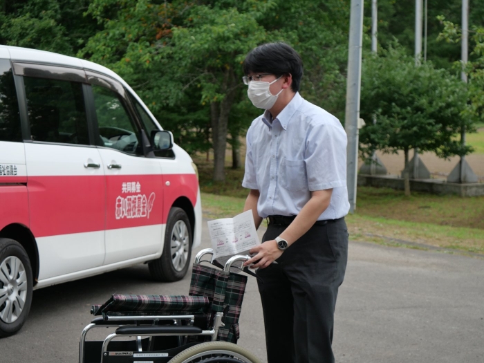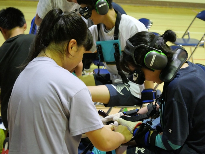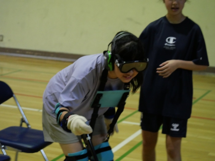 別海町社会福祉協議会のNさまを講師に障がいについて説明を受け、福祉器具の使い方を学びました、