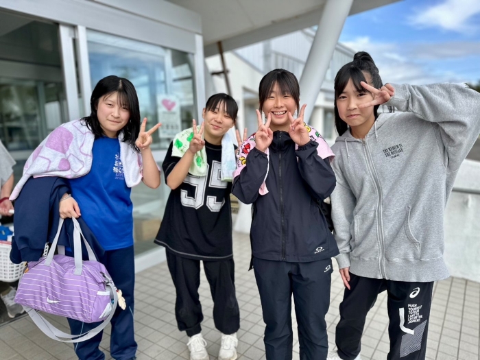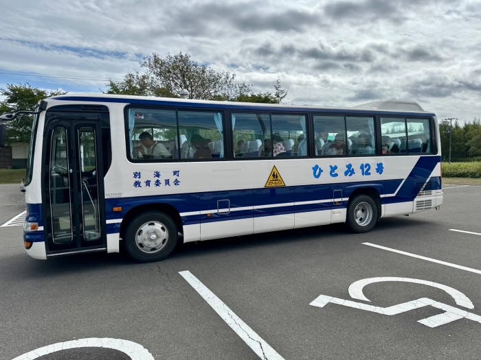 バスで西春別にある温水プールにスクールバスで移動して行いました。