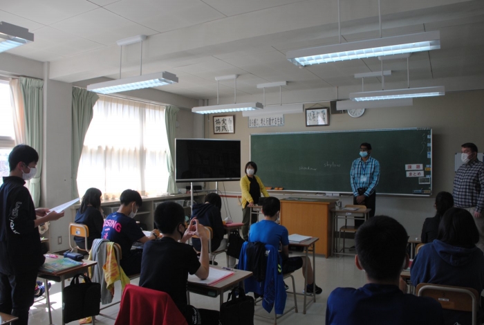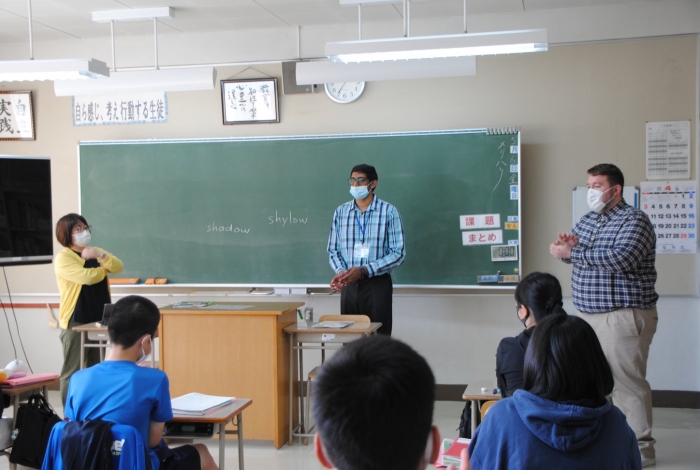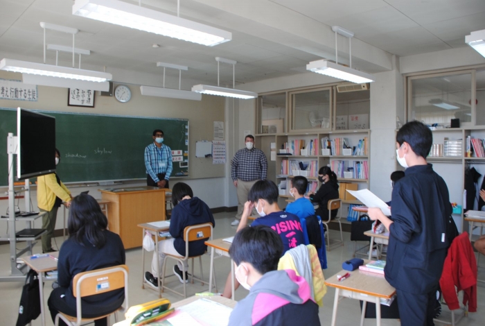 いままでのマシュー先生と一緒に来て、それぞれのクラスで自己紹介を行いました。