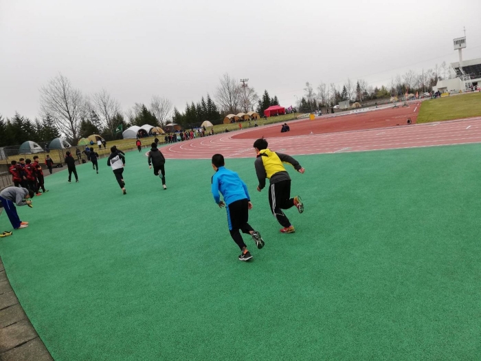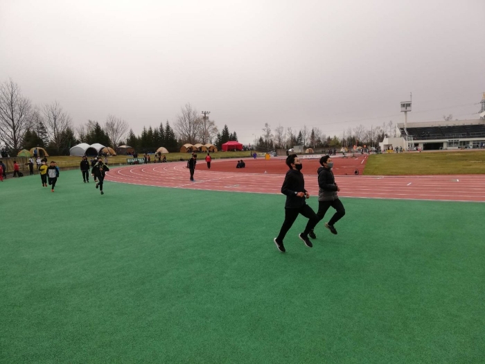 陸上部が町のスクールバスで釧路市に向かいました。