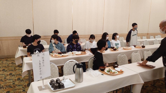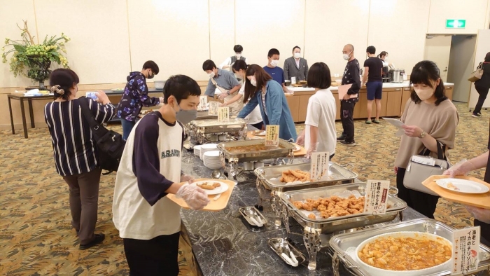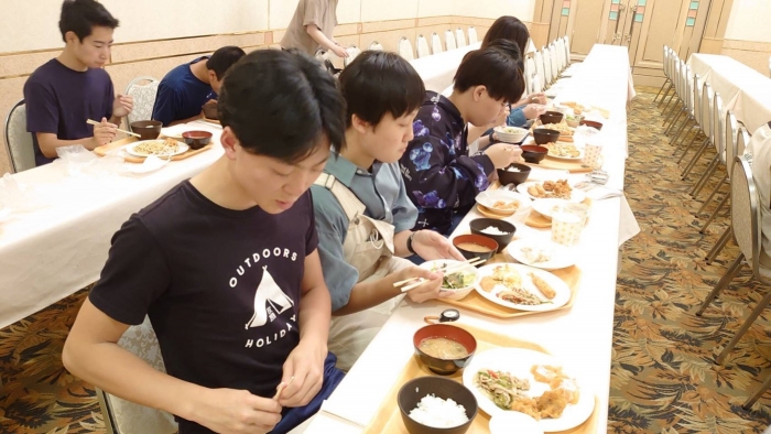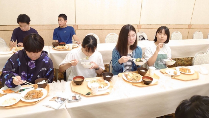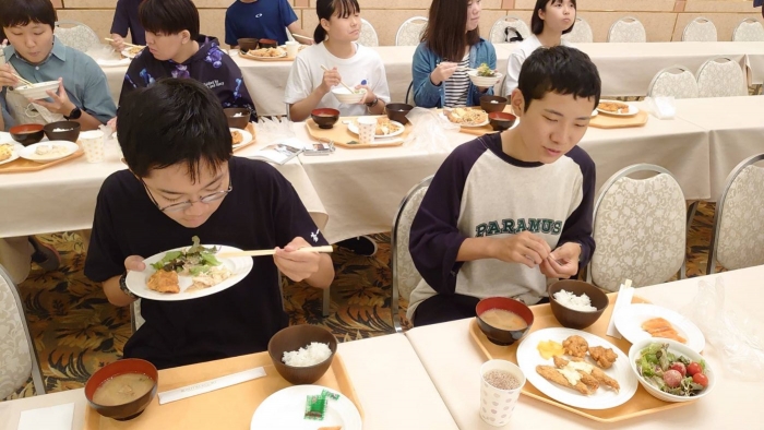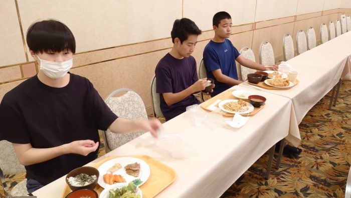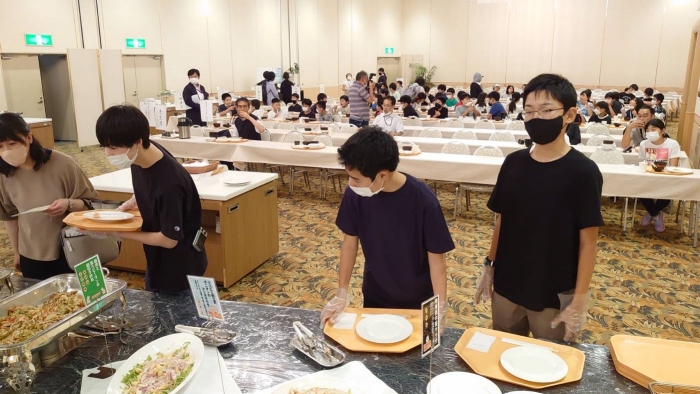 ルスツリゾートホテル。修学旅行最初の夕食。サーモン大人気❗