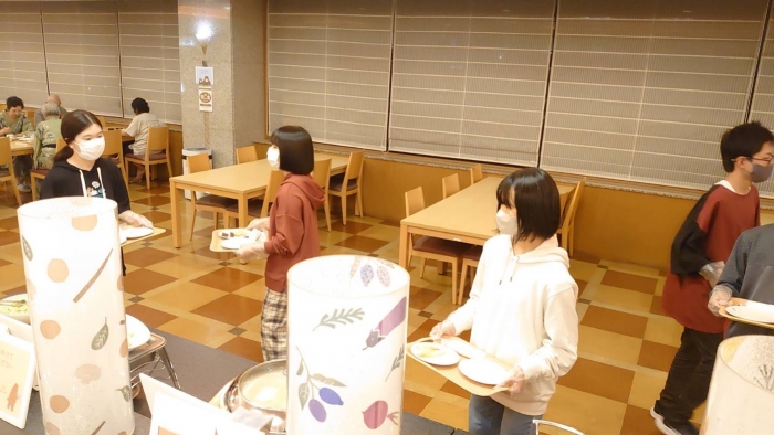夕食で、意外にアレルギー対応メニューが少なくて、TさんとKさんは苦労してましたが、最終的にはお腹いっぱいだ‼️と、満足してたようです。