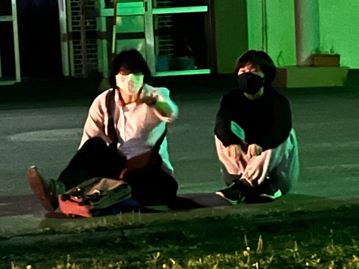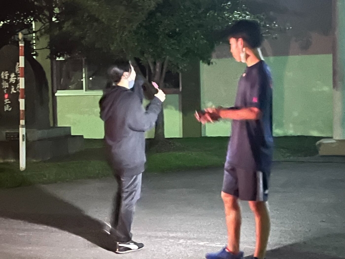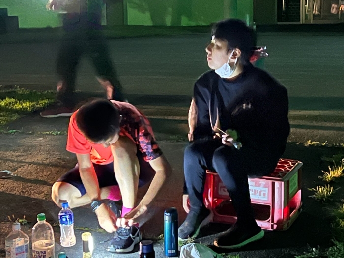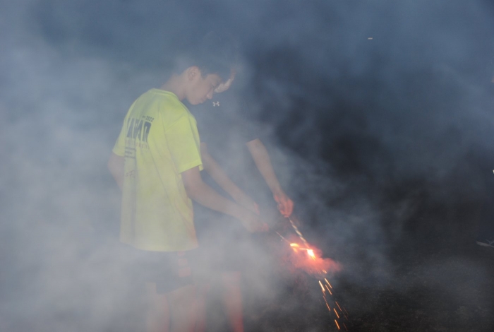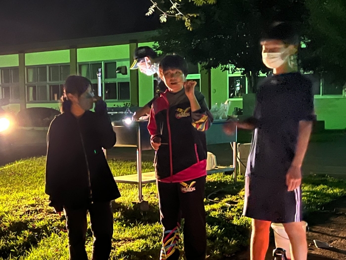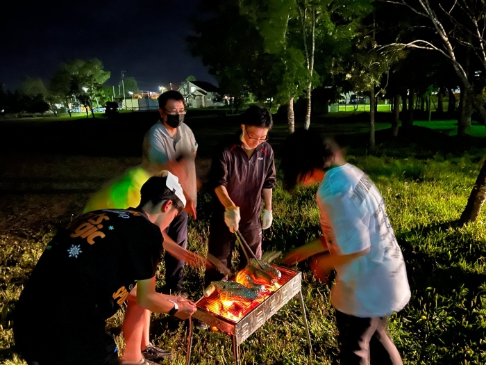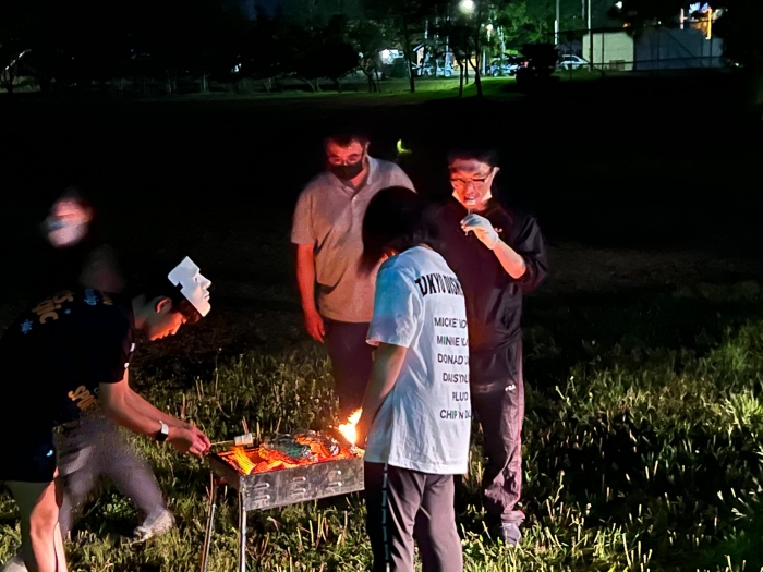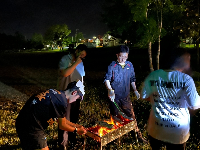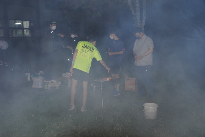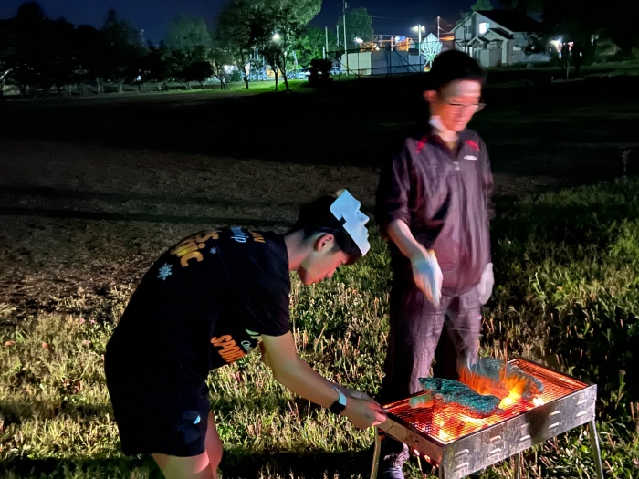 炭に火をつけて、サツマイモをアルミホイルで巻いて焼きました。