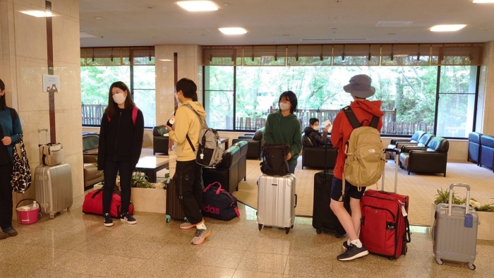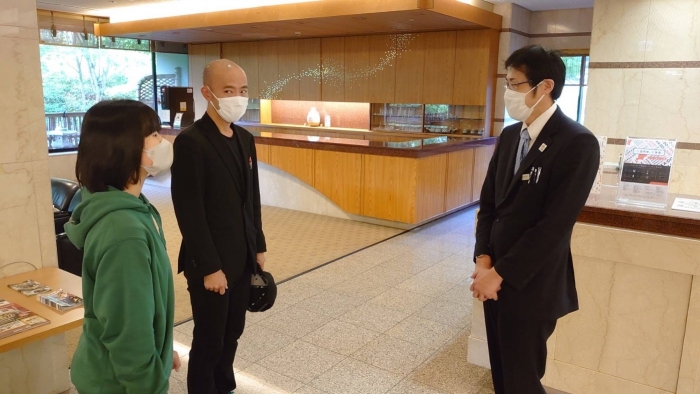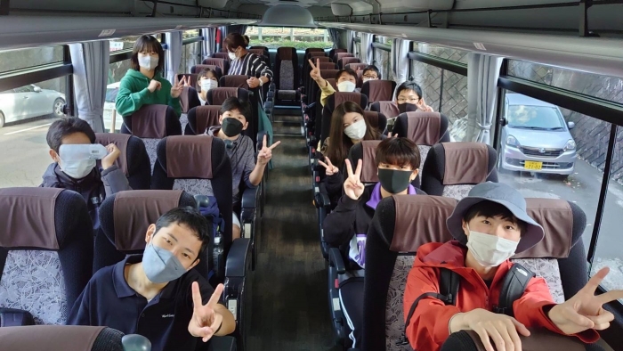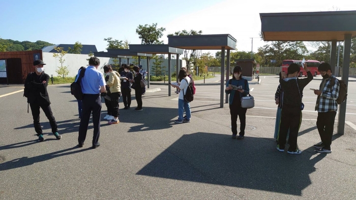 登別雅亭に見送られ、ウポポイへとバスは向かってます。