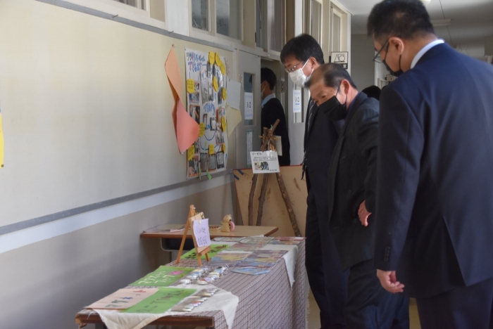 音楽室では生徒が授業で作成した作品の提示を行っていました。