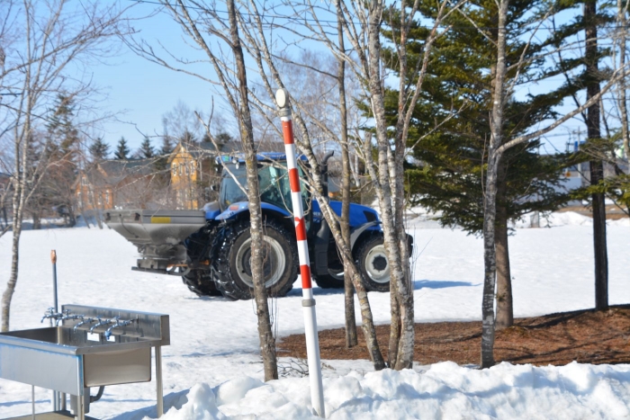 今日、保護者の方の御厚意によりグラウンドに融雪剤を散布していただきました。