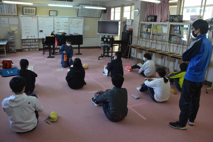 上春別中学校では、秋の避難訓練の時には避難所開設ゲームを行い、災害に対する意識を高める取組を行っています。