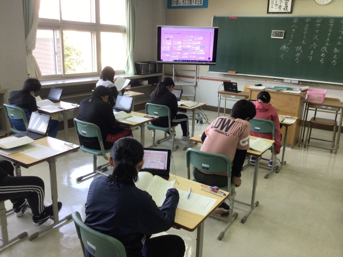 1年生の国語の授業ではタブレットを使って授業を行いました。