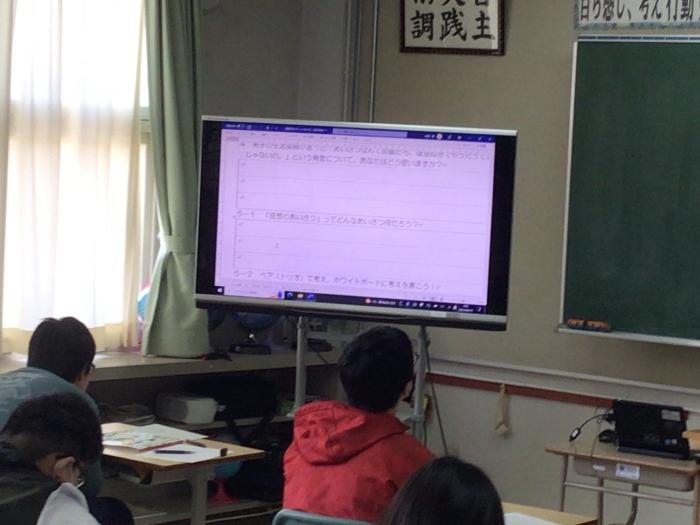 チームスを活用して意見をまとめていく授業についての説明でした。
