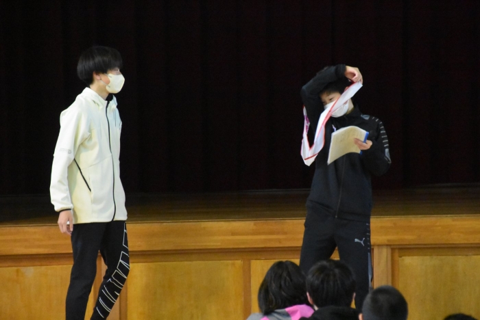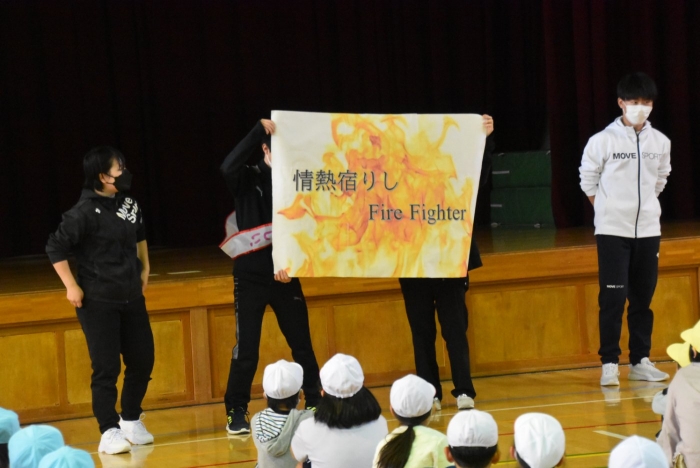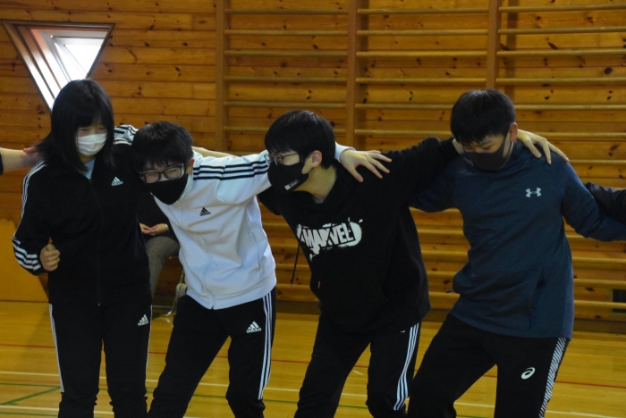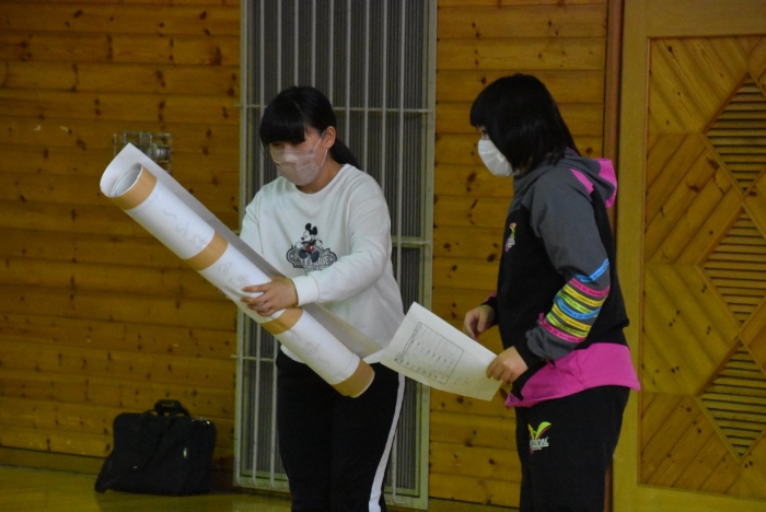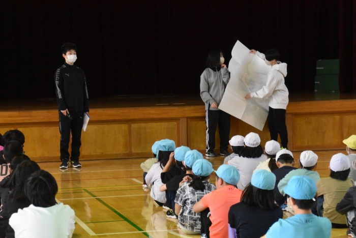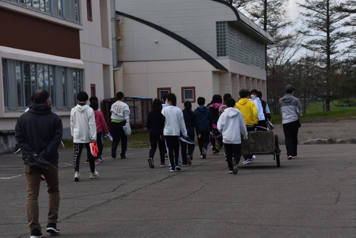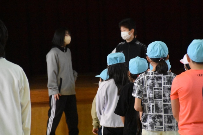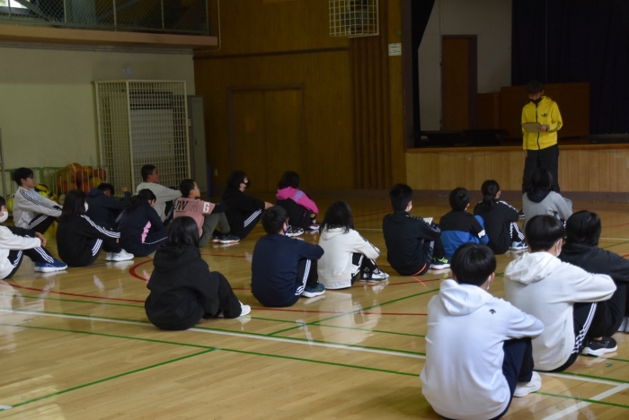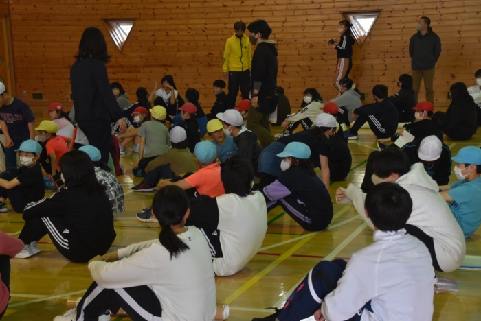 小中合同運動会に向けて、中学生が小学校に移動して顔合わせを行いました。