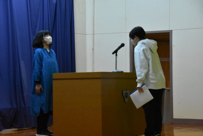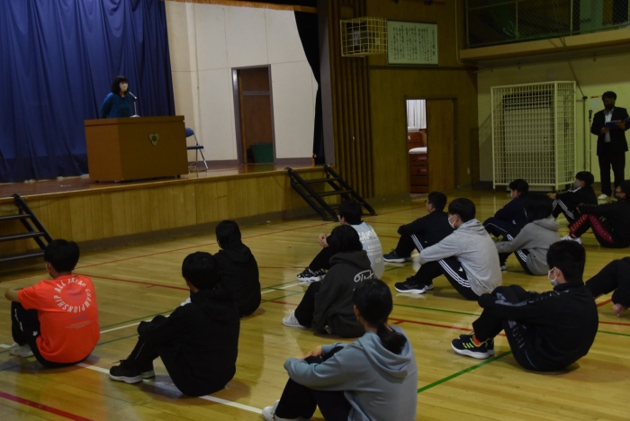 そこで昼休みに体育館に集まってもらい、離任式を行いました。