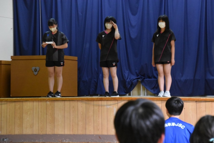 中体連壮行式 2023年05月31日(水) 5月31日(水)に地区中体連の壮行式が行われました。 陸上部、野球部、バレー部、卓球少年団、水泳少年団が参加します。 陸上部です。 野球部です。 バレー部です。 卓球少年団です。 水泳少年団です。 生徒会からの激励の言葉、そして校長先生のお話で終わりました。 6月3日(土)中標津町で地区中体連水泳大会が行われます。頑張ってください。