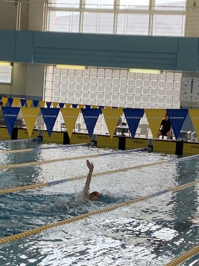 100M背泳ぎで全道大会の出場権を得ました。