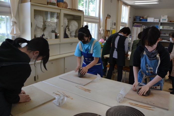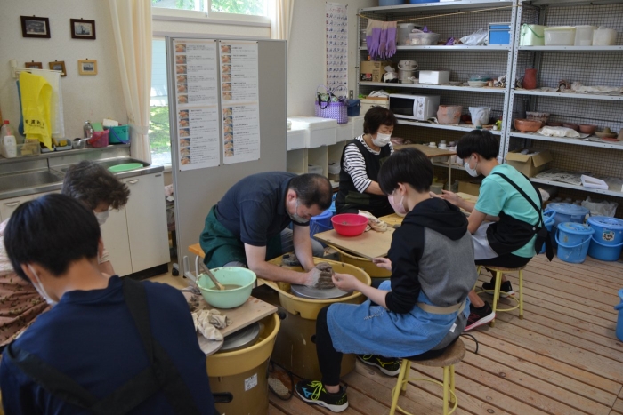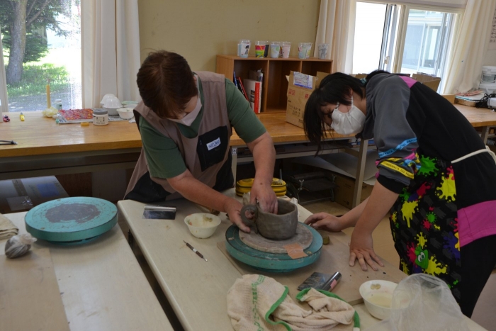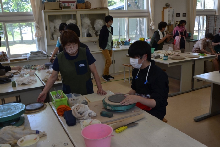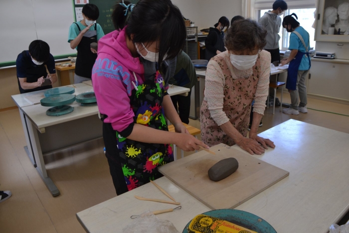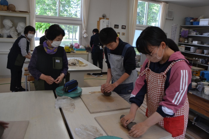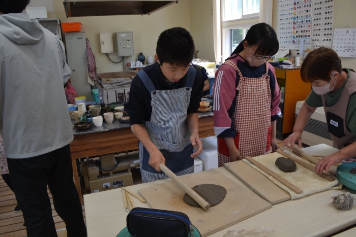 陶芸サークルの皆さまの協力を得て、3年生の陶芸教室を実施しました。
