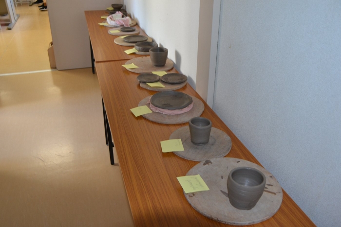 乾燥させた後、素焼きして、7月に釉薬を塗って再度焼く予定です。