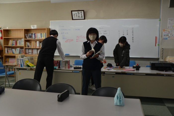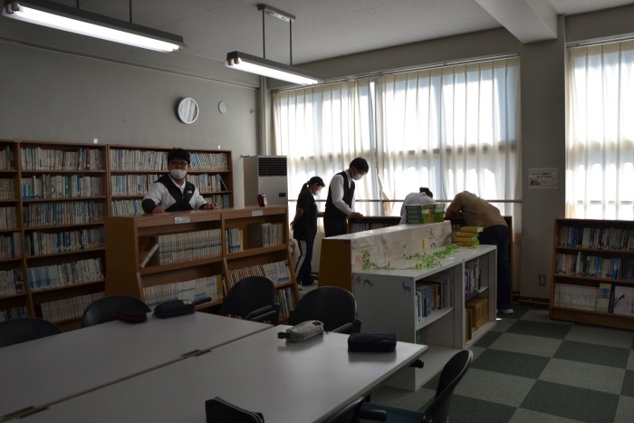 図書室の模様替え 2023年06月20日(火) 図書委員会では、図書室の机の配置を変更しました。 快適に読書できるように机の位置を変えて、一人席を作りました。 読書する環境を整えようということで行いました。